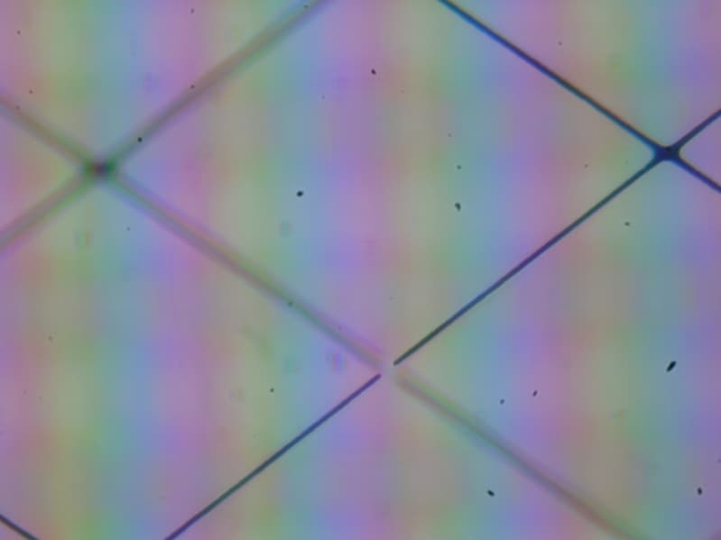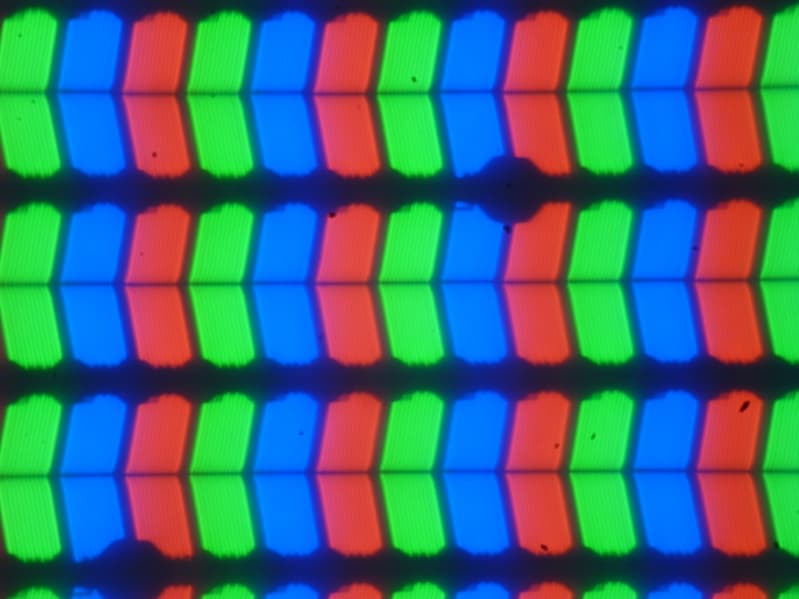 В этом ноутбуке используется матрица типа IPS. Микрофотографии демонстрируют типичную для IPS структуру субпикселей (черные точки — это пыль на матрице фотоаппарата):