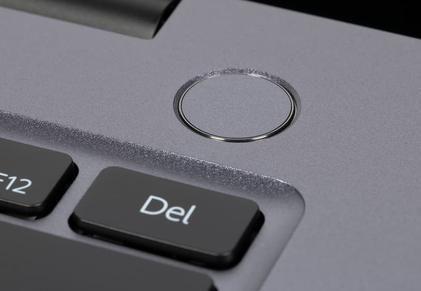 В правом дальнем углу рабочей панели размещена аккуратная кнопка включения ноутбука со встроенным сканером отпечатков пальцев.