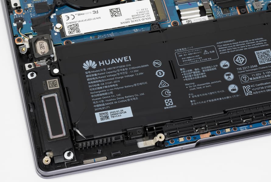 Емкость аккумулятора Huawei MateBook 14s 2023 не изменилась и составляет 60 Вт·ч (5195 мА·ч).