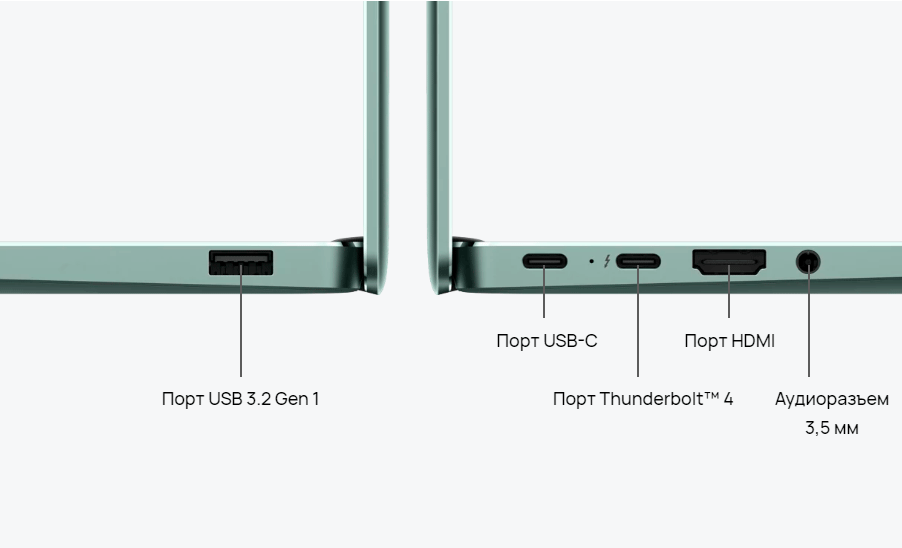 | Интерфейсы и порты | USB | 1×USB-C 3.2 Gen2/Thunderbolt 4, поддержка передачи данных (макс. 40 Гбит/с), зарядки и DisplayPort; 1×USB-C 3.2 Gen1, поддержка передачи данных, зарядки и DisplayPort; 1×USB-A 3.2 Gen1 |