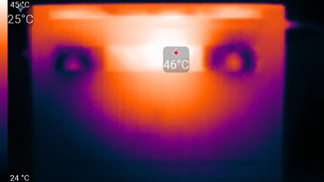 Ниже приведены термоснимки, полученные после долговременной работы ноутбука под максимальной нагрузкой на CPU и GPU (режим Производительность) :