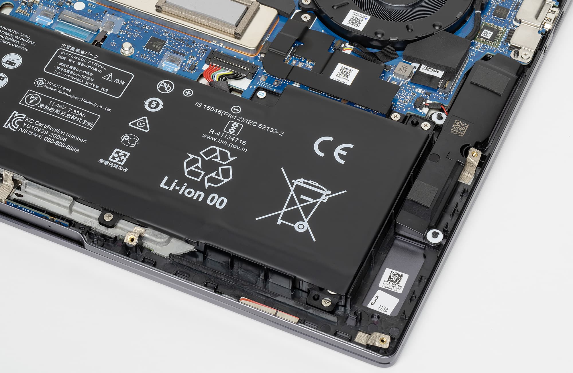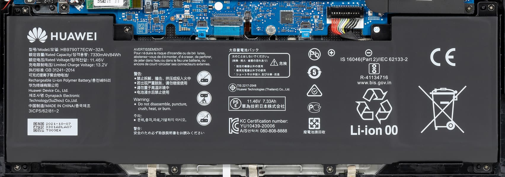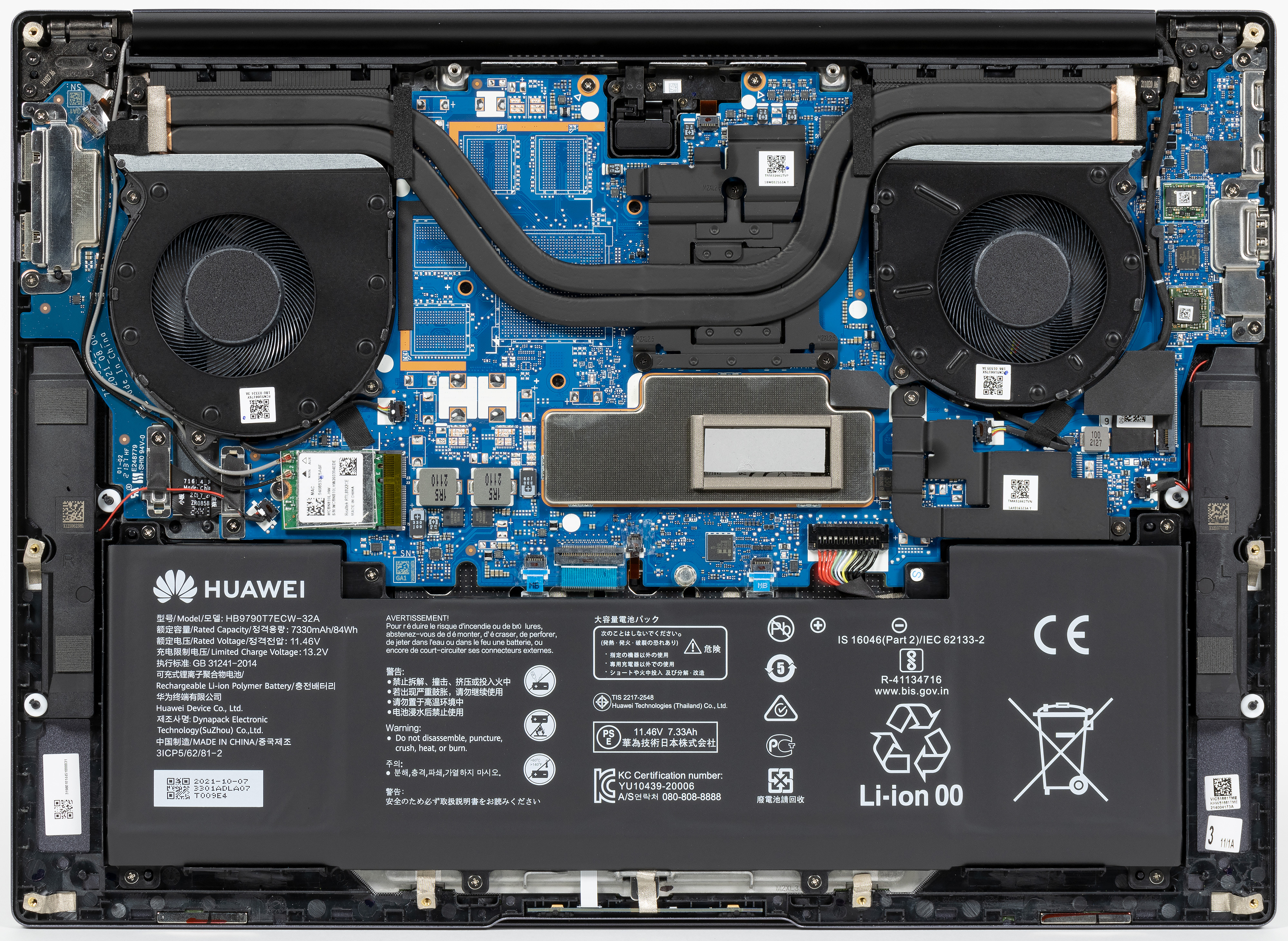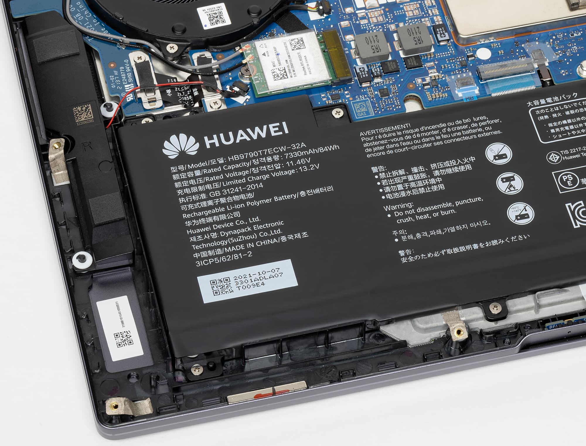 Емкость литий-полимерного аккумулятора в Huawei MateBook 16 (Crem-WFD9) составляет 84 Вт·ч (7330 мА·ч).