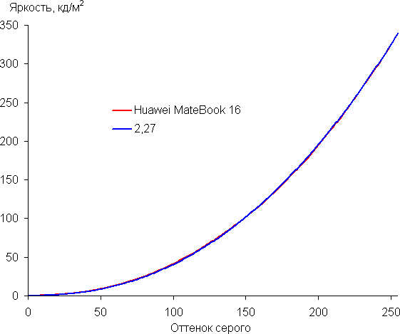 Аппроксимация полученной гамма-кривой дала показатель 2,27, что немного выше стандартного значения 2,2, при этом реальная гамма-кривая мало отклоняется от аппроксимирующей степенной функции: