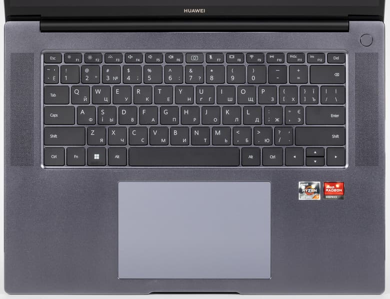 Контактная поверхность тачпада накрыта прочным матовым стеклом для плавного скольжения и более тонкой тактильной отдачи. Работать с ним действительно удобно, хотя кнопки, по субъективному мнению автора, туговаты. Кроме этого, в тачпад встроена метка NFC (Huawei Share) с увеличенной на 200% площадью. Ее наличие позволяет пользователям сопрягать смартфон или планшет с ноутбуком и максимально расширять за счет этого функциональность таких устройств.