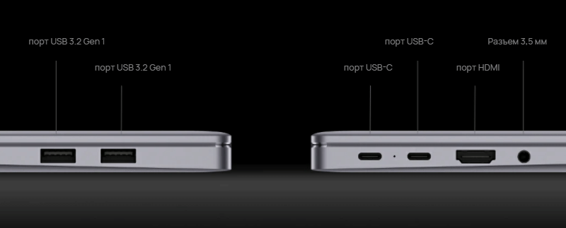 Порты и разъемы у ноутбуков Huawei традиционно размещены на боковых торцах.