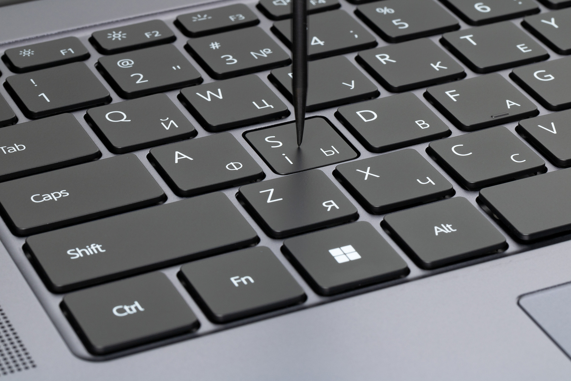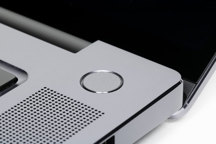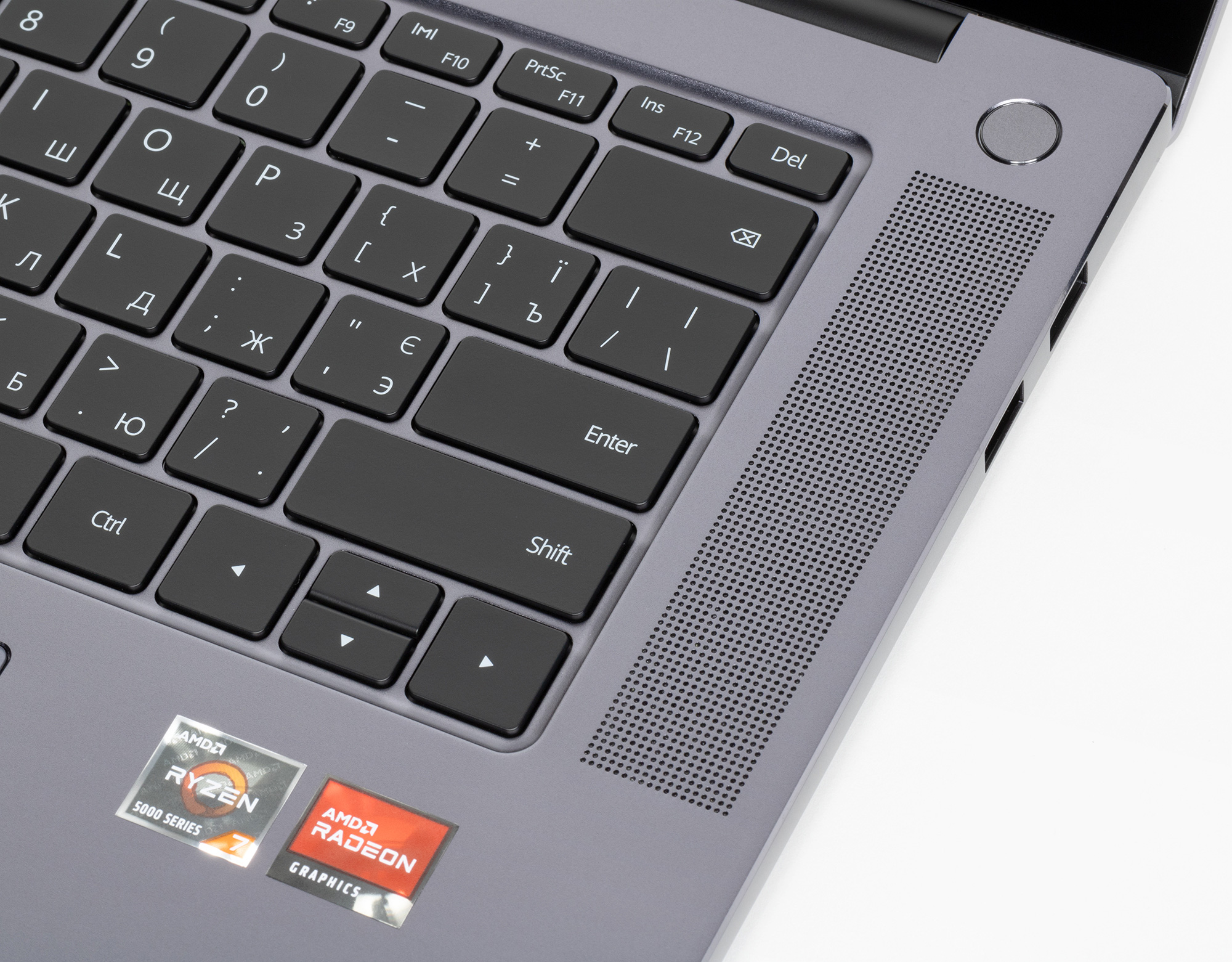 Симпатичная кнопка включения ноутбука сдвинута в правый дальний угол и оснащена сканером отпечатков пальцев.
