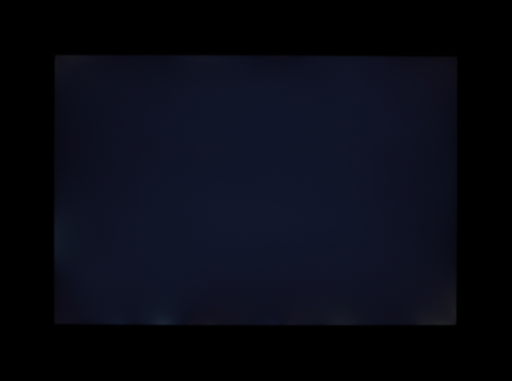 Если отступить от краев, то равномерность всех трех параметров очень хорошая. Контрастность по современным меркам для данного типа матриц выше типичной. Фотография ниже дает представление о распределении яркости черного поля по площади экрана: