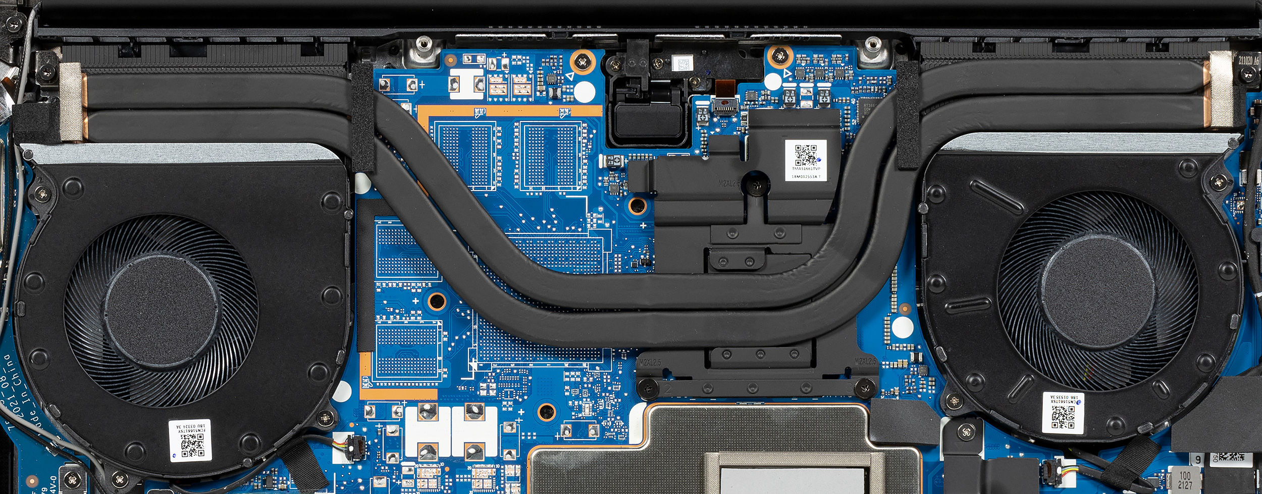 В сравнении с предыдущей моделью Huawei MateBook с 16-дюймовым экраном у новой модели вместо одной 8-миллиметровой тепловой трубки появилось две 6-миллиметровых, вентиляторы увеличены в диаметре до 75 мм и получили S-образные лопасти из тончайшего прочного пластика. Благодаря этому, по заявлениям производителя, эффективность системы охлаждения возросла на 30%.