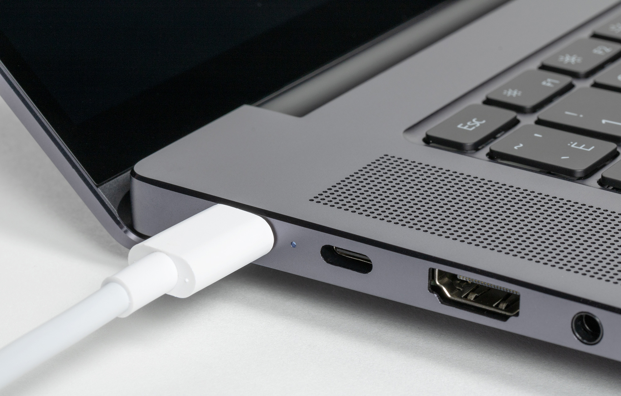 Заряжать ноутбук можно через любой из двух портов USB Type-C (обратная зарядка также поддерживается).