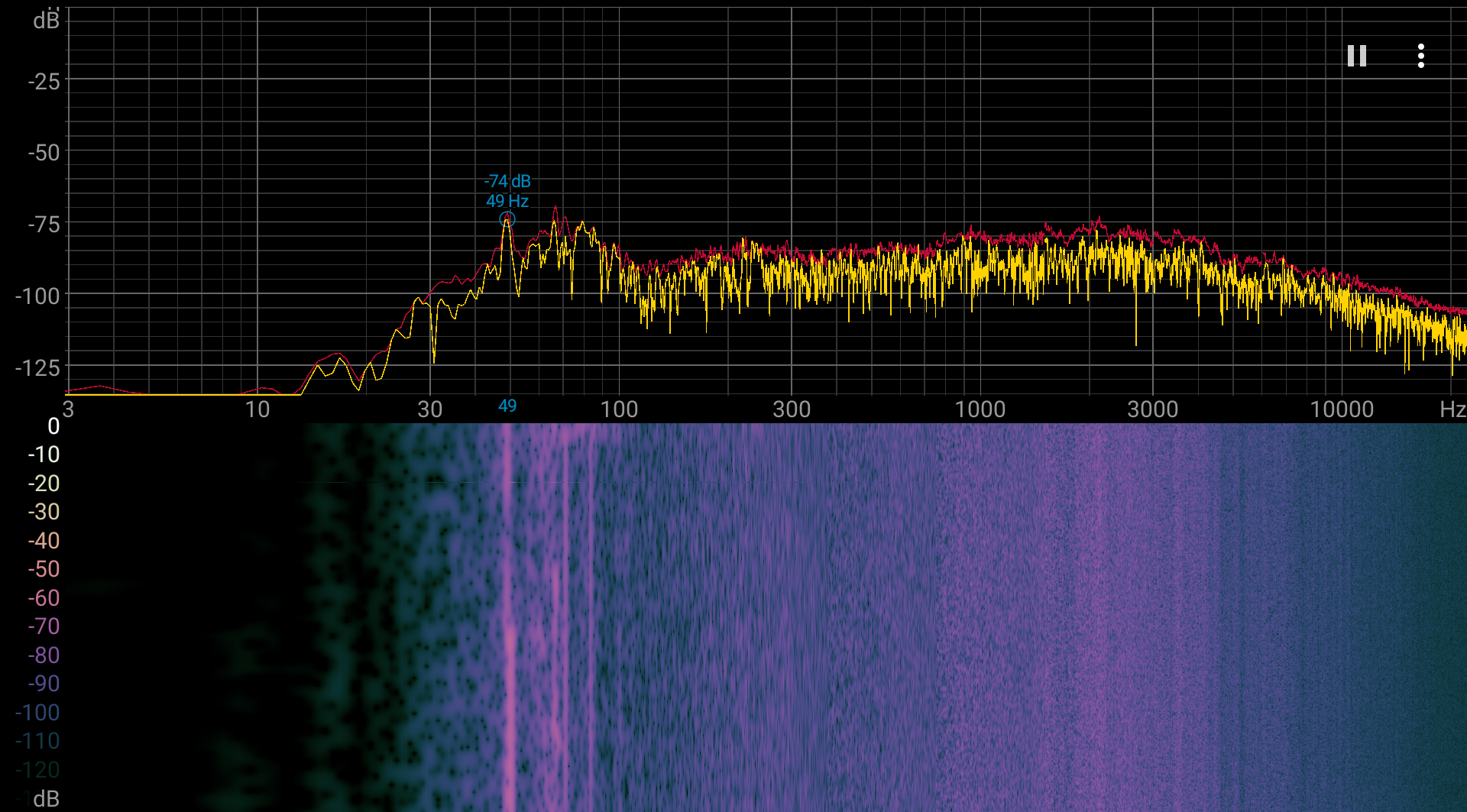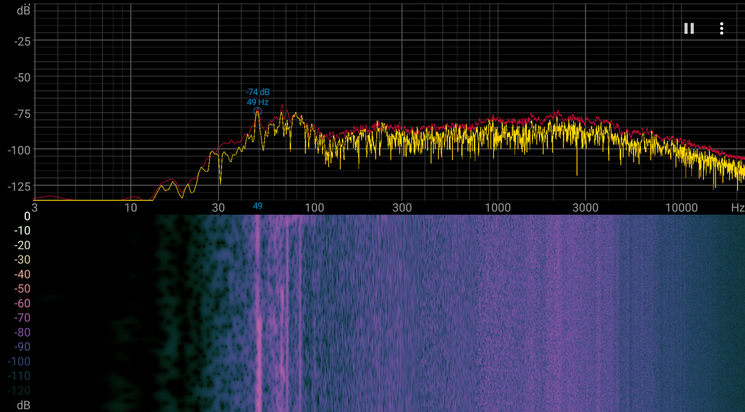 АЧХ розового шума показывает, что низких частот ожидаемо мало, да и ровной эту зависимость не назовешь: