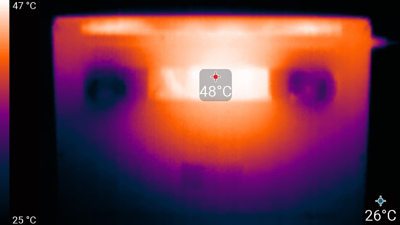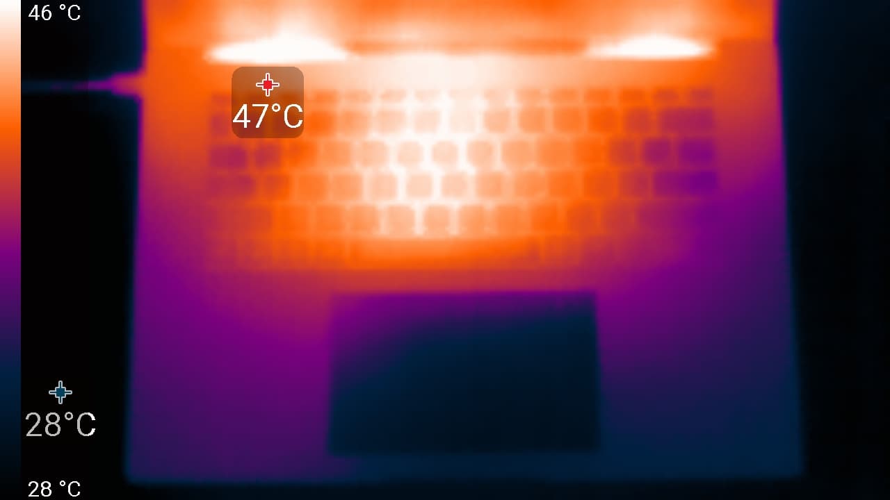 Ниже приведены термоснимки, полученные после долговременной работы ноутбука под максимальной нагрузкой на CPU и GPU (режим Производительность) :