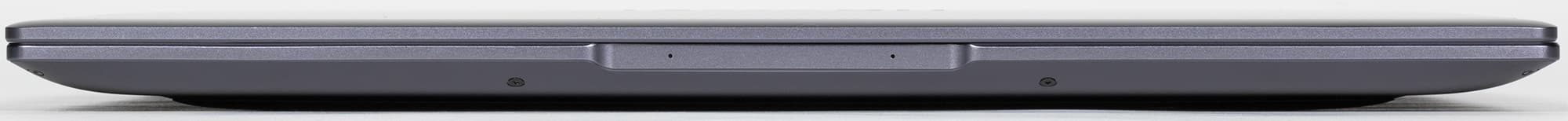 К переднему торцу корпус ноутбука сужается, поэтому создается впечатление, что он тоньше, чем есть на самом деле. Здесь же расположена выемка для удобного захвата пальцами верхней панели и два микрофона.