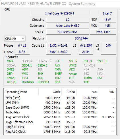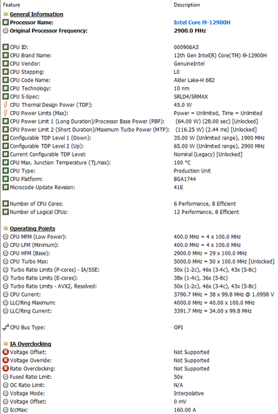 | Процессор | Соге i9-12900H (6 P-ядер/12 потоков до 5,0 ГГц + 8 E-ядер до 3,8 ГГц, L3-кеш 24 МБ, TDP 35—115 Вт); доступна версия с i7-12700H | |