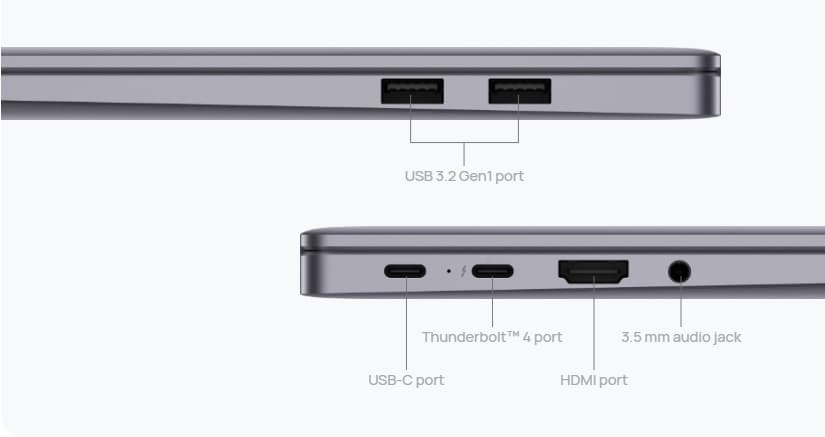 Однако один из двух USB Type-C у MateBook 16s — порт интерфейса Thunderbolt 4 с пропускной способностью до 40 Гбит/с, поддержкой обратной зарядки и вывода видео (DisplayPort).