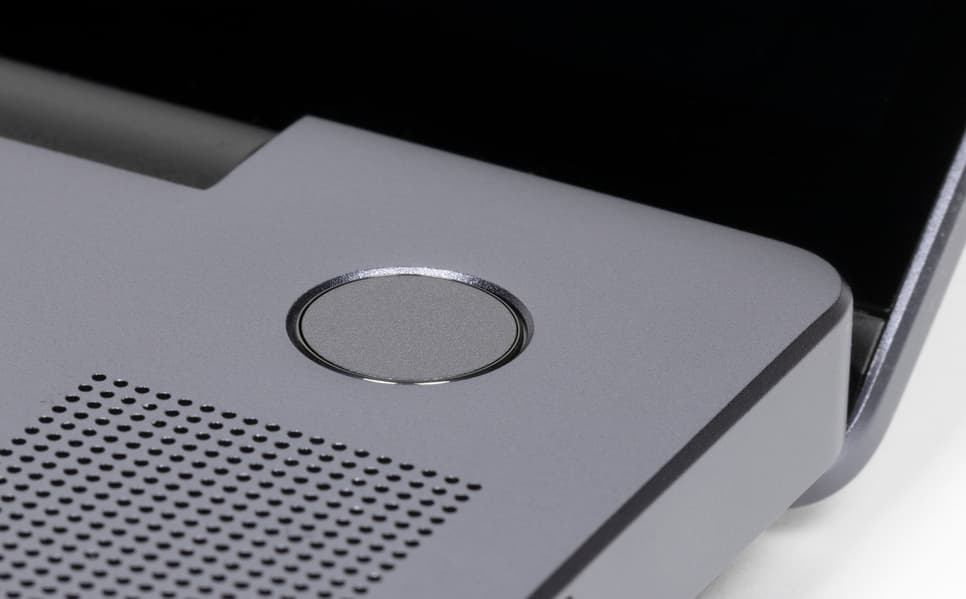 Сканер отпечатков пальцев встроен в кнопку, расположенную в правом дальнем углу рабочей панели.