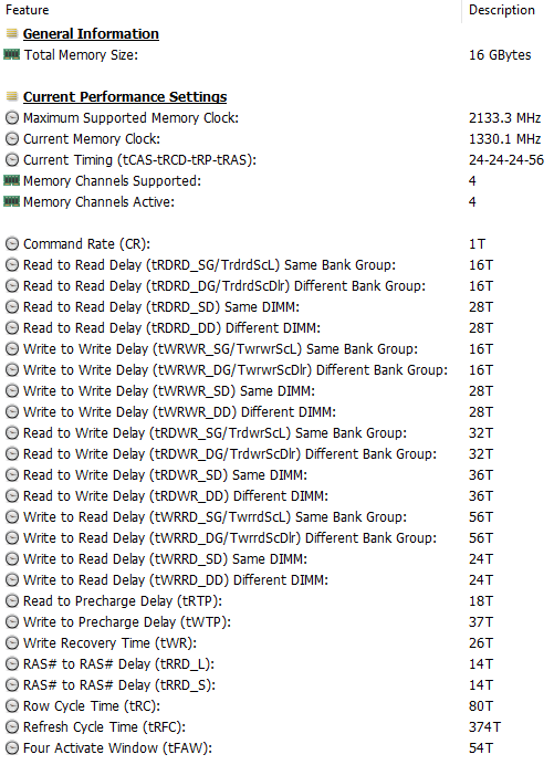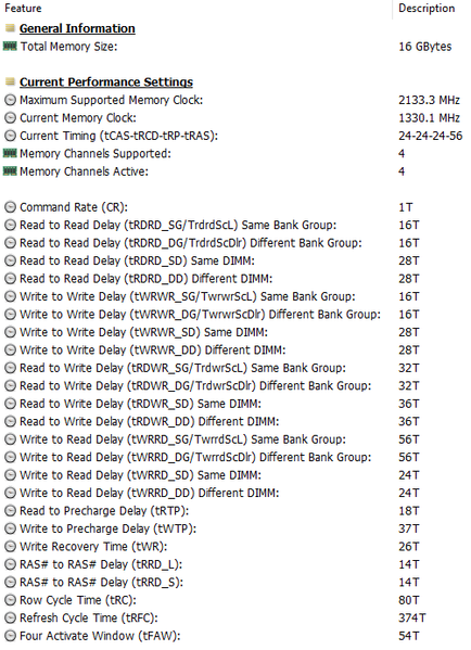 | Оперативная память | 16 (4×4) ГБ LPDDR4x-4266 (распаяна на плате), четырехканальный режим (соответствует двухканальному режиму DDR4), тайминги 32-34-34-79 CR1 доступны конфигурации с 8 ГБ | |