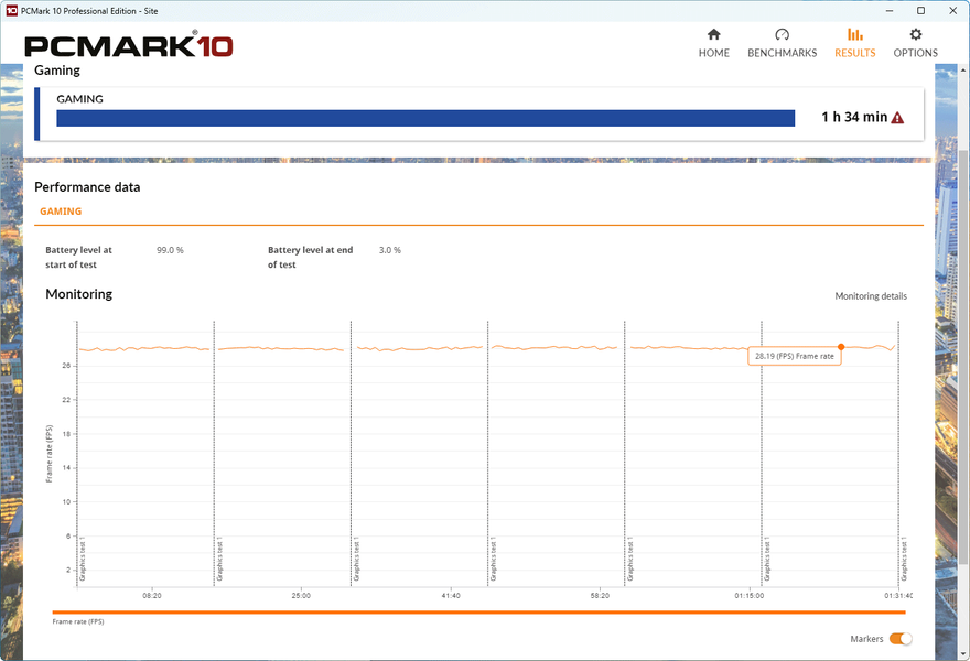 И еще небольшой бонус-дополнение к тестам автономности ноутбука. Мы провели два экстремальных теста PCMark’10:
