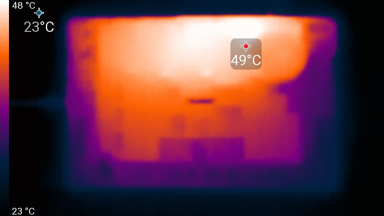 Ниже приведены термоснимки, полученные после долговременной работы устройства под максимальной нагрузкой на CPU и GPU (профиль Производительность):