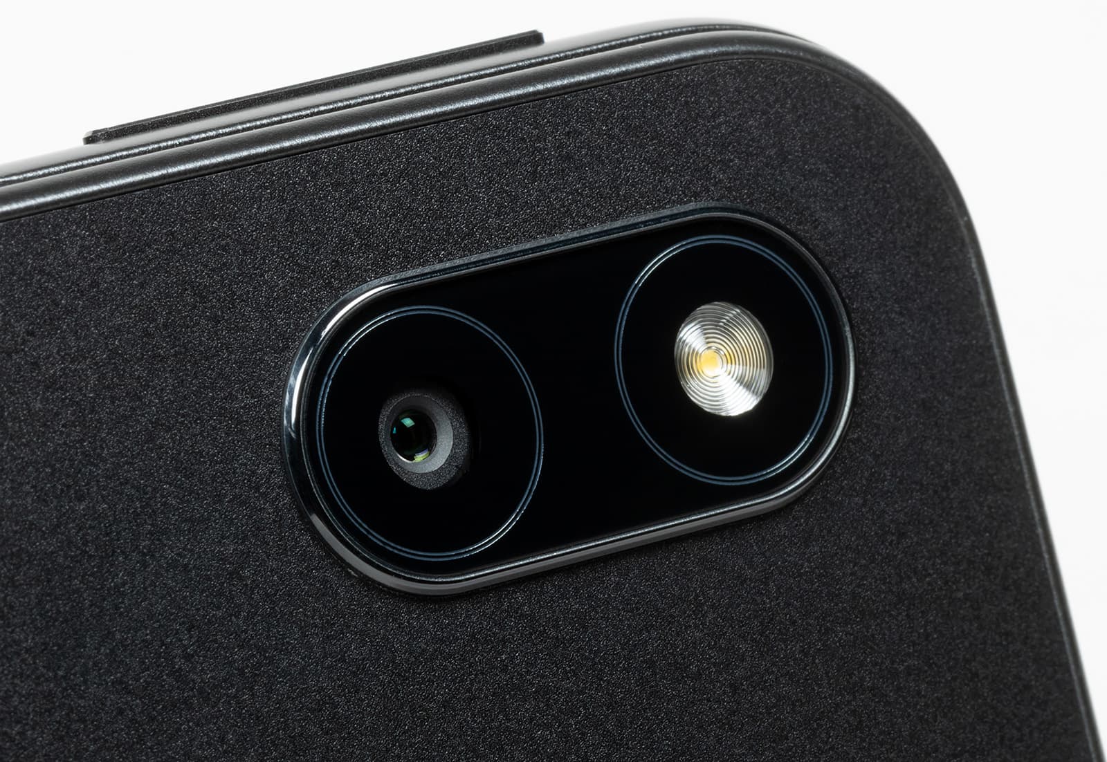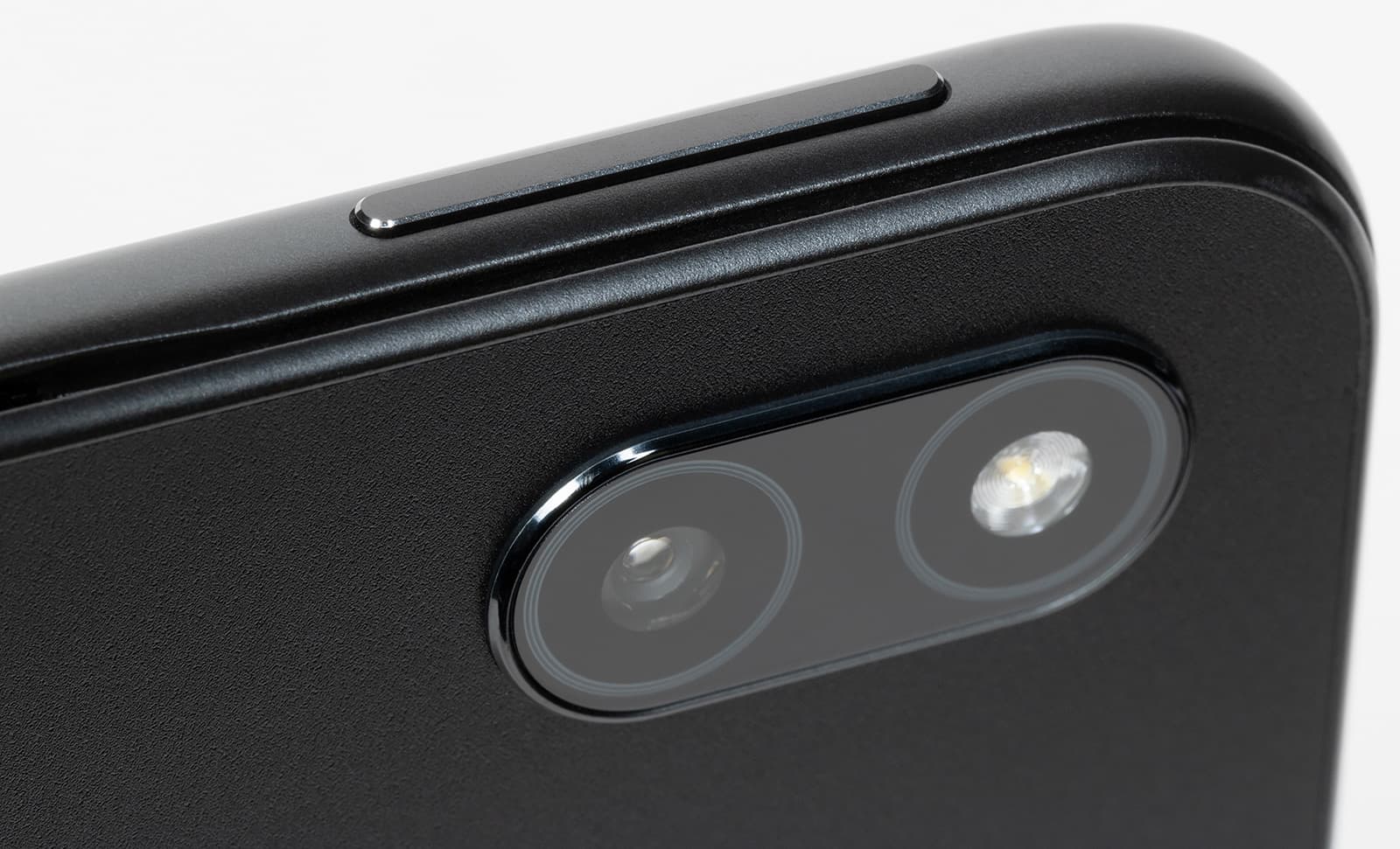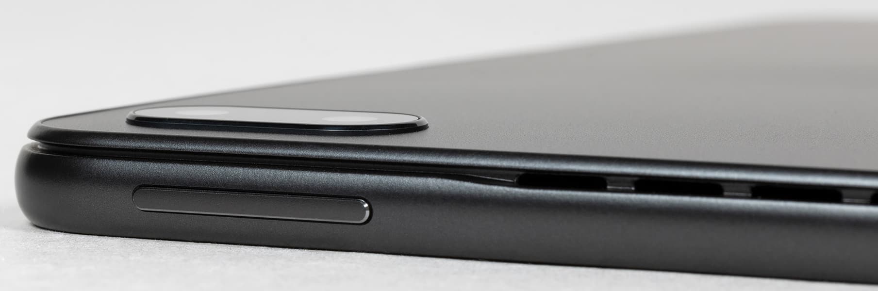 Задняя панель корпуса выполнена из пластика, имеет темно-серый матовый оттенок и не скользит в руках. На ней только основная камера и название компании-производителя.