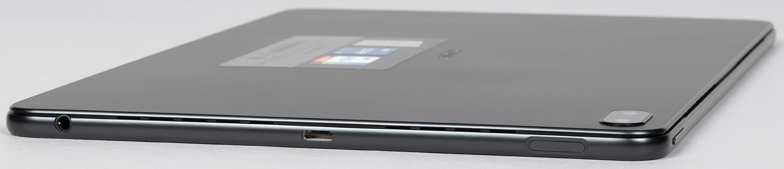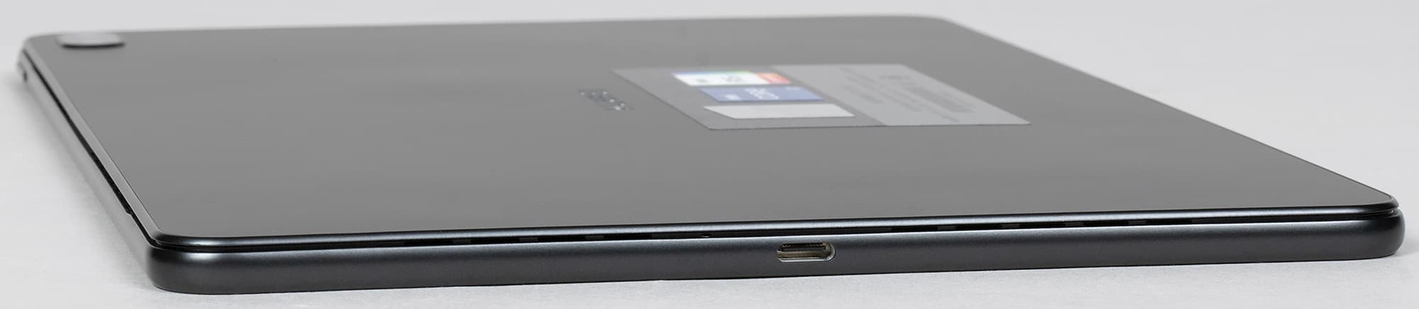 Он подключается к любому из двух портов USB Type-C планшета кабелем длиной 1,75 м, а при подключении адаптера к электросети на торце корпусе загорается белый светодиод, мигающий во время зарядки.