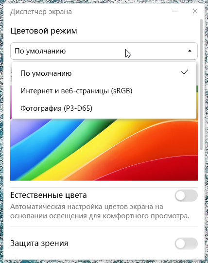 По умолчанию цветовой охват этого OLED-экрана очень широкий — он даже шире DCI-P3: