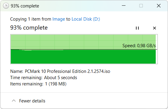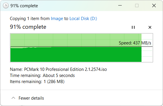| Скорость копирования данных, c | 42,62 | 7,15 | 6,64 |