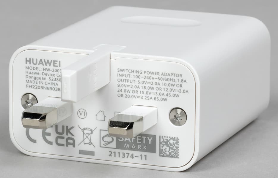 В комплект Huawei MateBook E 2023 входит адаптер питания мощностью 65 ватт (модель HW-200325EP0) с вилкой стандарта Великобритании.