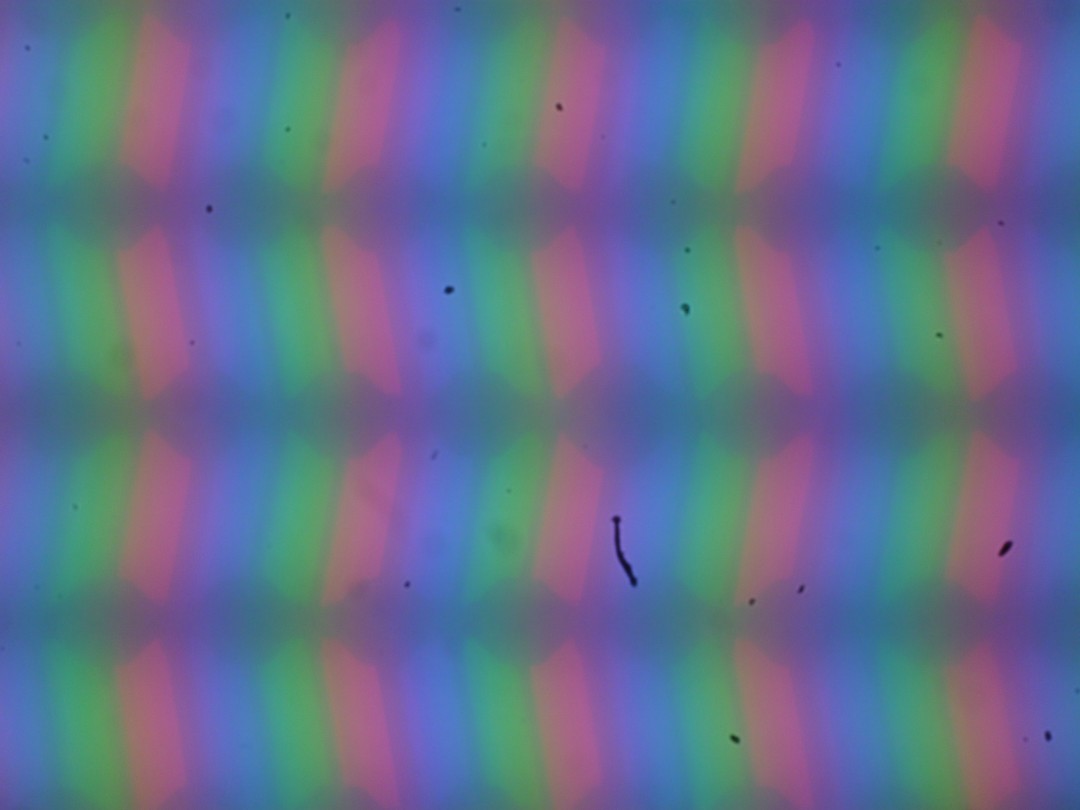 В данном планшете используется матрица типа IPS. Микрофотографии демонстрируют типичную для IPS структуру субпикселей:
