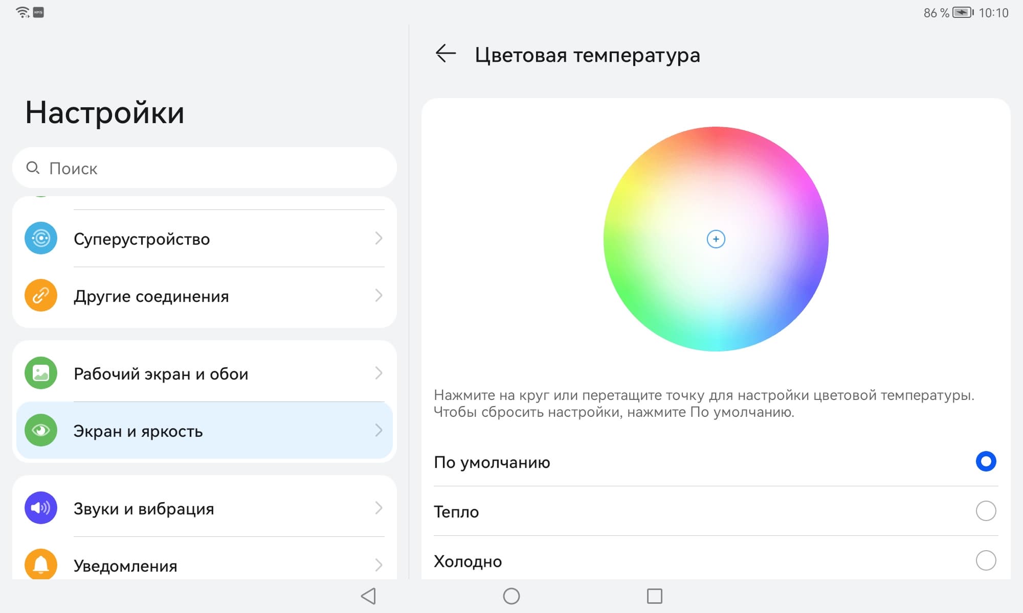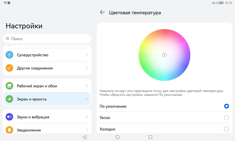 Цвета на экране Huawei MatePad 10.4 имеют насыщенность близкую к естественной, а цветовой баланс у экранов явно различается.