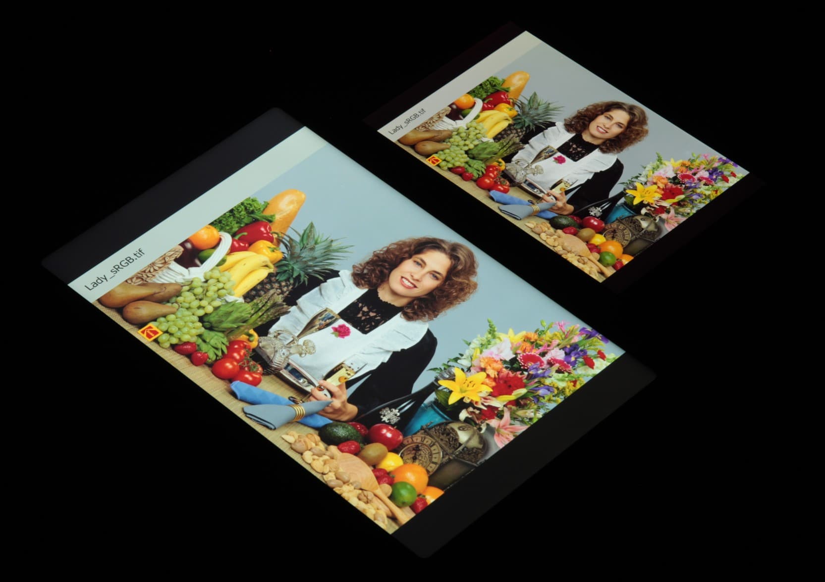 Видно, что цвета не сильно изменились у обоих экранов, но у Huawei MatePad 10.4 контраст уменьшился в большей степени из-за большего высветления черного.