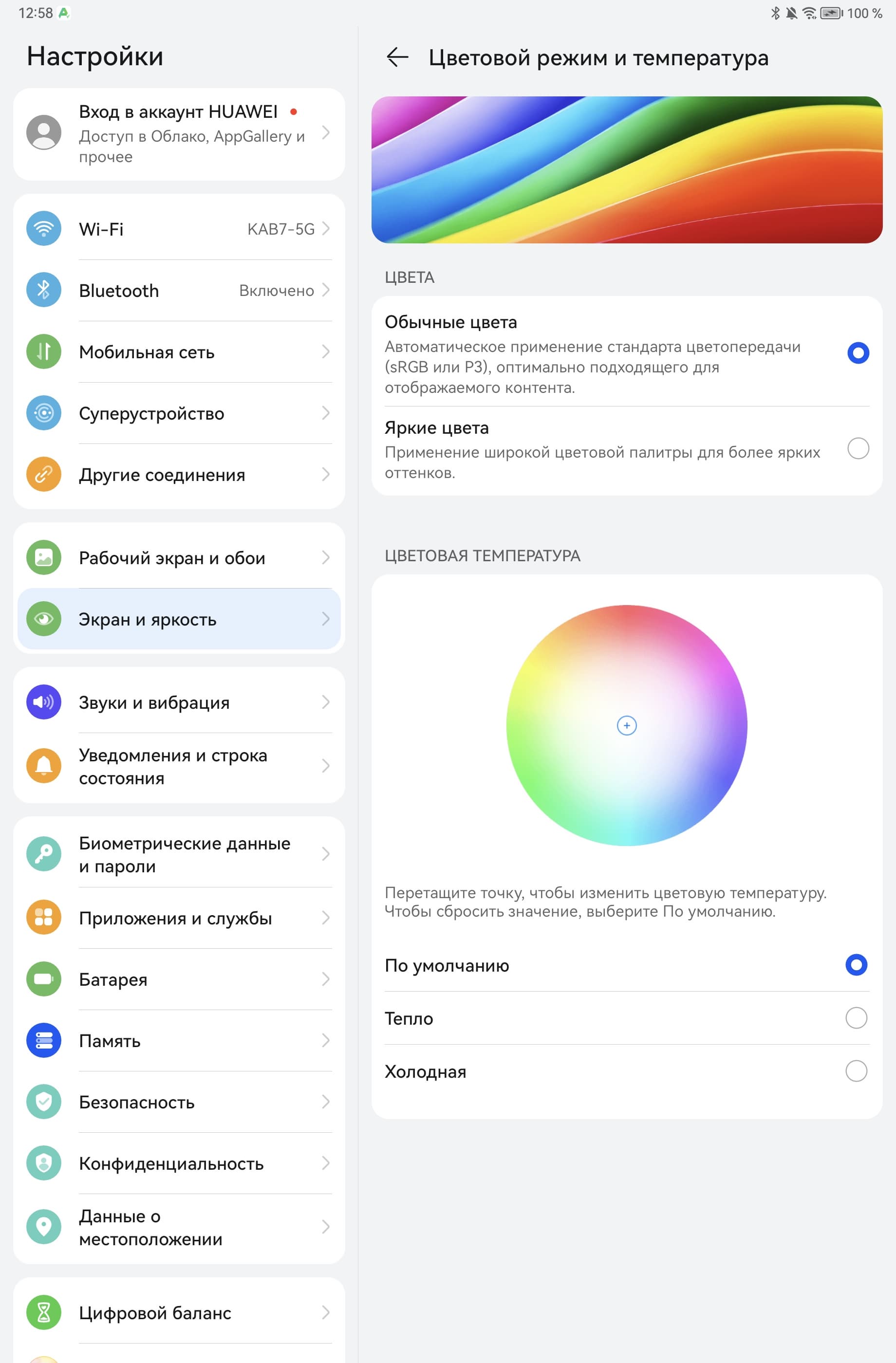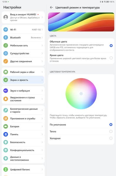 Фотографии выше получены при активном профиле Обычные цвета (он выбран по умолчанию) в настройках экрана, всего их два: