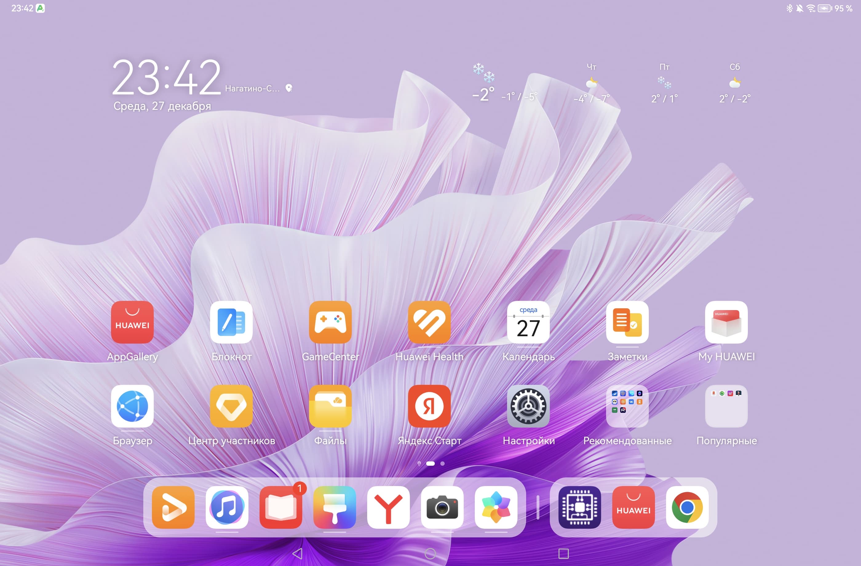 Планшет работает на базе HarmonyOS 3.1. Об этой операционной системе мы уже писали, рассказывали и про специфику установки приложений без магазинов и сервисов Google. Если повторить главное, то здесь есть фирменный магазин AppGallery, предлагающий помимо собственного ассортимента приложений также поиск по некоторым сторонним архивам дистрибутивов, включая APK Pure. Некоторые приложения Google тоже можно скачать прямо из AppGallery, они устанавливаются вместе с «оберткой» Gbox, имитирующей для программ среду с поддержкой GMS. Не стоит забывать и преимущества AppGallery в нынешних условиях: наличие приложений российских банков, которые удалены из Play Store, а также поддержку российских платежных карт Mastercard, Visa и «Мир» и оплату со счета мобильного оператора.