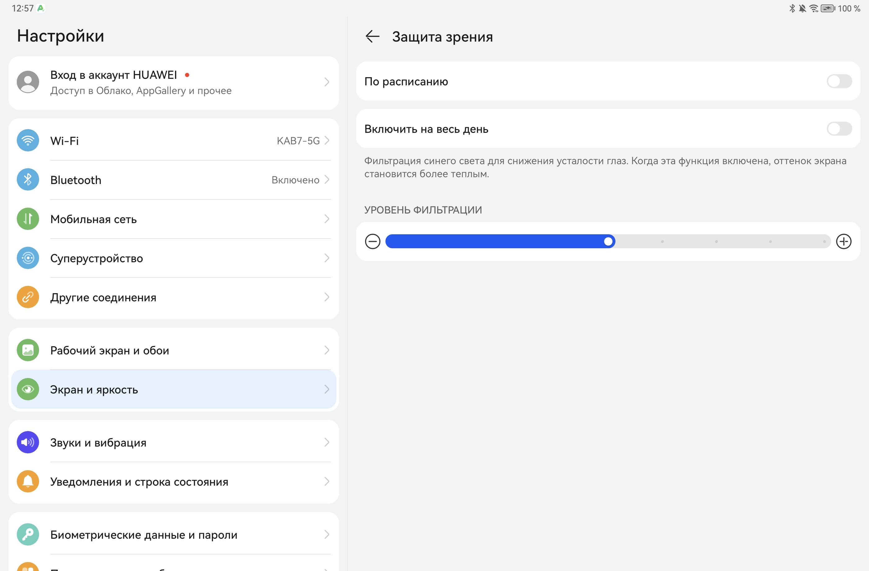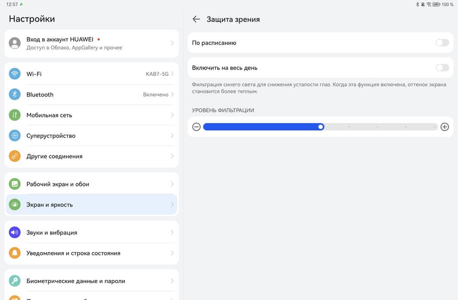Планшет оснащен несъемным аккумулятором емкостью 8300 мА·ч, это очень приличный показатель по меркам данного сегмента. Продолжительность автономной работы у устройства достойная и ровно такая же, как у обычного MatePad Air. Что и требовалось доказать: покрытие экрана на такие вещи не влияет.