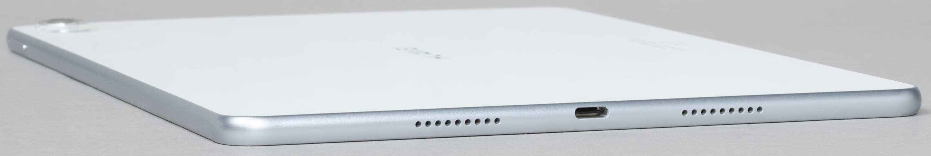 Скругленные грани цвета «металлик» удачно дополняют этот образ. Ну а расположение разъемов, микрофонов и динамиков у PaperMatte Edition аналогично обычному MatePad Air. Справа (если держать планшет в ландшафтной ориентации экраном к себе) мы видим порт USB-C и отверстия динамиков.