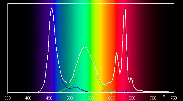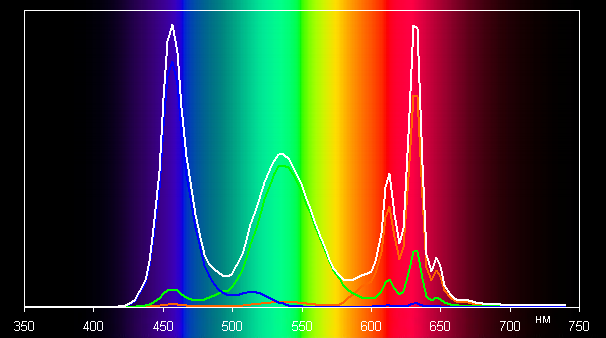 Без коррекции (профиль Яркие цвета) спектры компонент хорошо разделены: