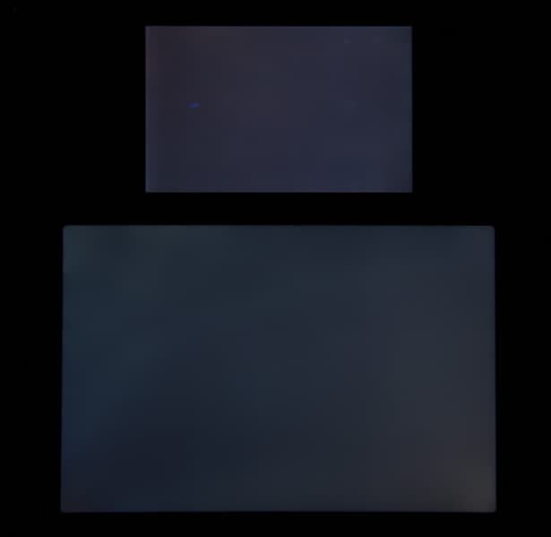 При перпендикулярном взгляде равномерность черного поля средняя, так как оно, в основном к краям, немного высветляется: