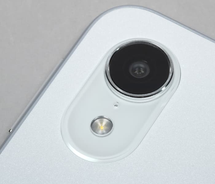 На верхней грани, рядом с блоком камеры и качелькой регулировки громкости, размещены три отверстия микрофона, что должно обеспечивать хороший прием звука при видеосвязи.