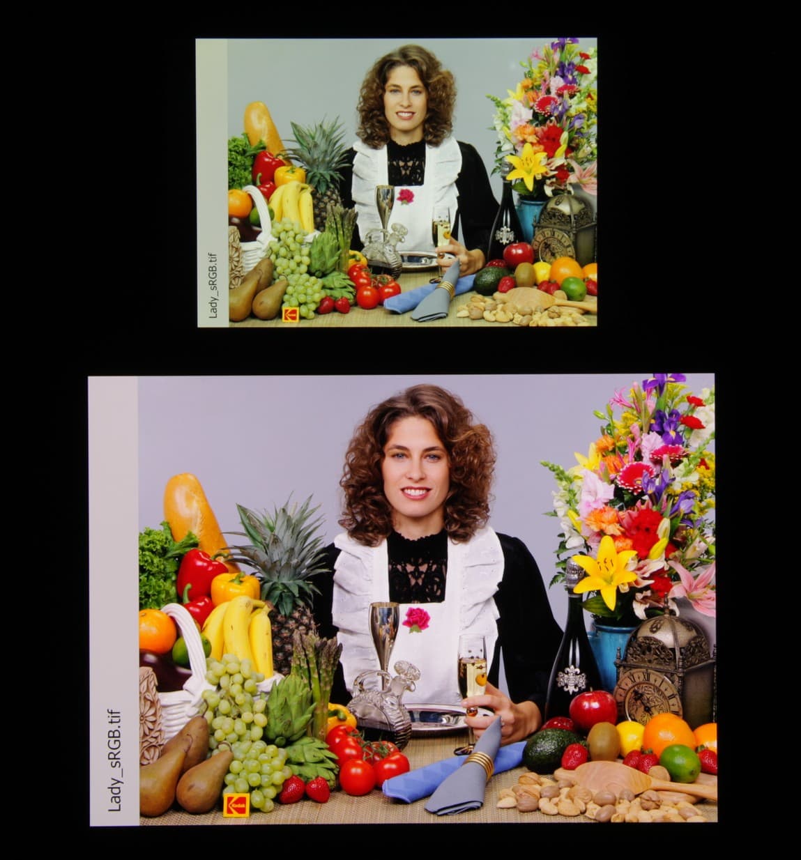 Отметим, что на экранах с широким цветовым охватом (без соответствующей коррекции) цвета́ обычных изображений, оптимизированных для устройств sRGB, выглядят неестественно насыщенными. Отсюда и рекомендация: в большинстве случаев смотреть кино, фотографии и все естественное лучше при выборе профиля Обычные цвета, и только если фотография или видео имеют охват DCI-P3, принятый в цифровом кинематографе, имеет смысл переключить профиль на Яркие цвета.