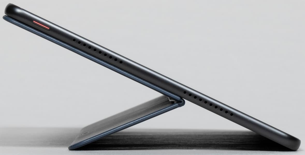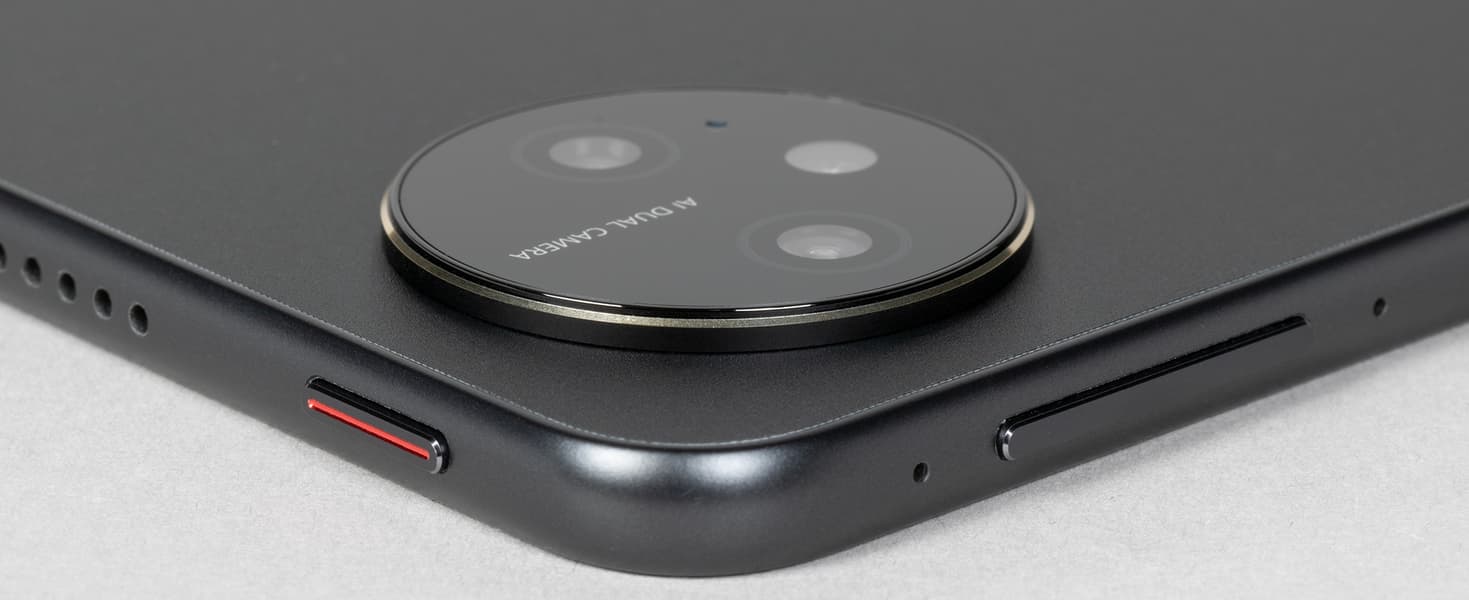 В целом дизайн планшета нас порадовал. Очень тонкая рамка вокруг экрана, красивый цвет тыльной поверхности, здорово выглядящий блок камер — безусловные плюсы. Из минусов — материалы корпуса (и аксессуаров) и отсутствие поддержки карты памяти.