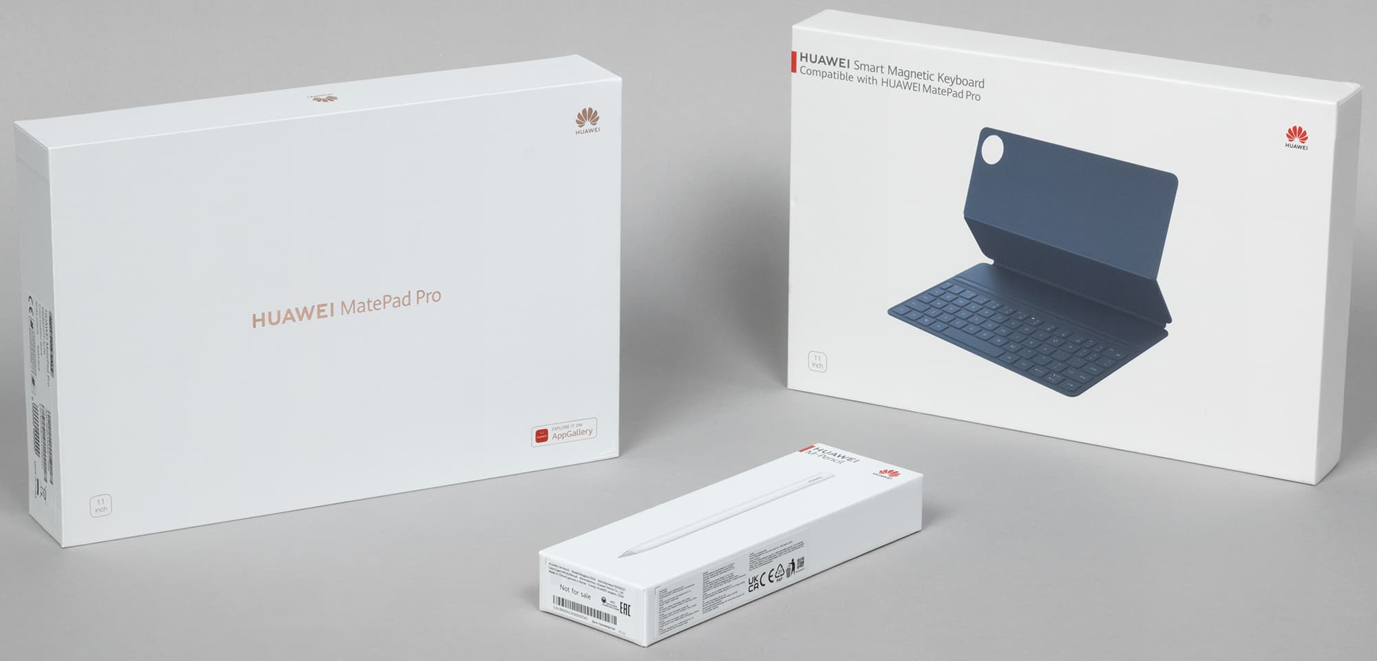 Кроме того, к нам приехала обложка-клавиатура Smart Magnetic Keyboard, сделанная именно для этой модели, и стилус Huawei M-Pencil. Что интересно, у клавиатуры отдельная коробка, и весьма массивная. Она лишь немногим меньше, чем у самого планшета, причем здесь как раз есть всевозможные руководства и гарантийные талоны.