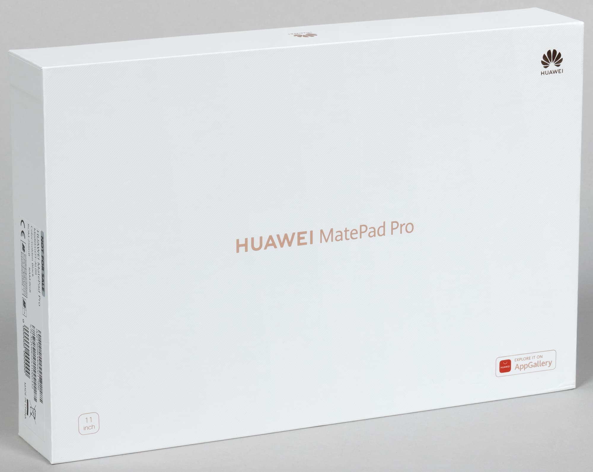 Упаковка MatePad Pro выглядит стандартно и бесхитростно: белая коробка с названием устройства по центру — и никаких фотографий.