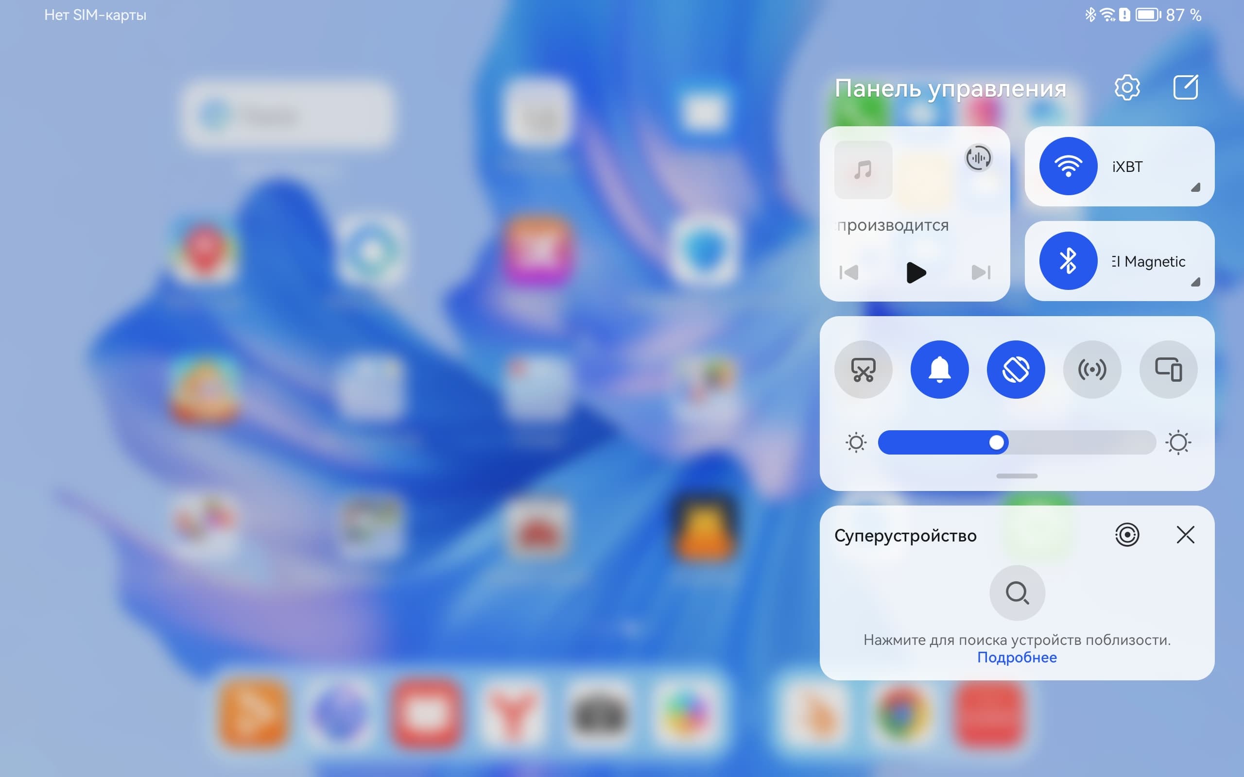Из других особенностей интерфейса отметим панель управления, которая вызывается свайпом сверху справа. Здесь интересно то, что многие плашки в панели управления можно развернуть, чтобы получить доступ к дополнительным опциям.