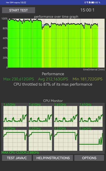 Тротлинг у планшета средний — тест в приложении CPU Throttling Test дал результат 87%. В общем, среди Android-планшетов это сейчас одна из самых производительных моделей.