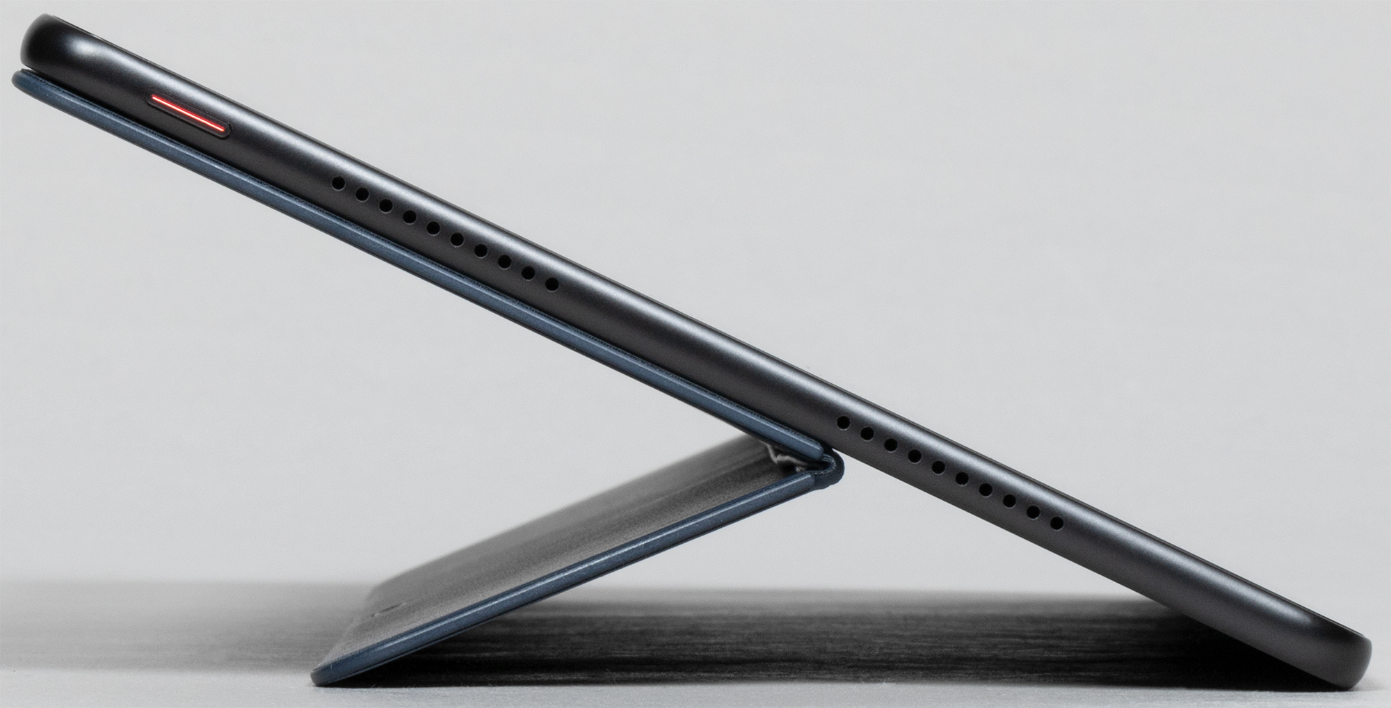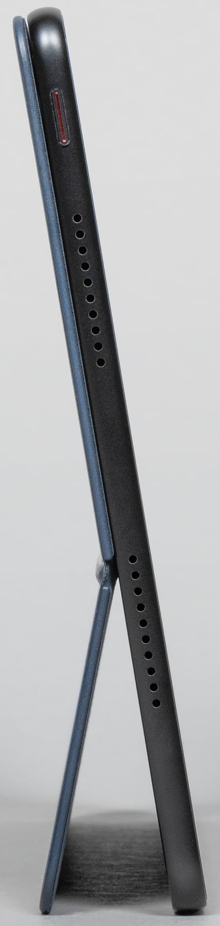 Более того, в этой же коробке мы обнаружили держатель для стилуса (который поставляется отдельно). Держатель со стилусом примагничивается к спинке обложки, а она, в свою очередь, защищает спинку планшета.