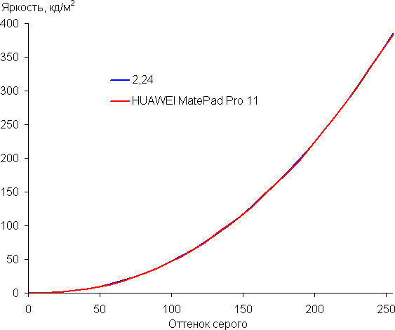 Цветопередача хорошая, цвета в меру насыщенные, цветовой баланс у экранов немного различается. Напомним, что фотография не может служить надежным источником сведений о качестве цветопередачи и приводится только для условной наглядной иллюстрации. В частности, выраженный красноватый оттенок белого и серого полей, присутствующий на фотографиях экрана Huawei MatePad Pro 11, при перпендикулярном взгляде визуально отсутствует, что подтверждается аппаратными тестами с помощью спектрофотометра. Причина в том, что спектральная чувствительность матрицы фотоаппарата неточно совпадает с этой характеристикой человеческого зрения.