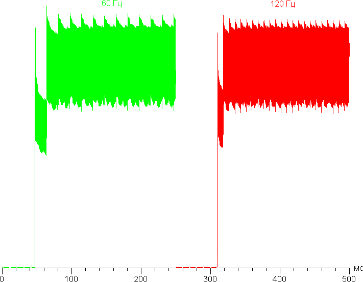 В режиме 120 Гц плавность прокрутки заметно повышается. Посмотрим, изменится ли при этом характер модуляции: