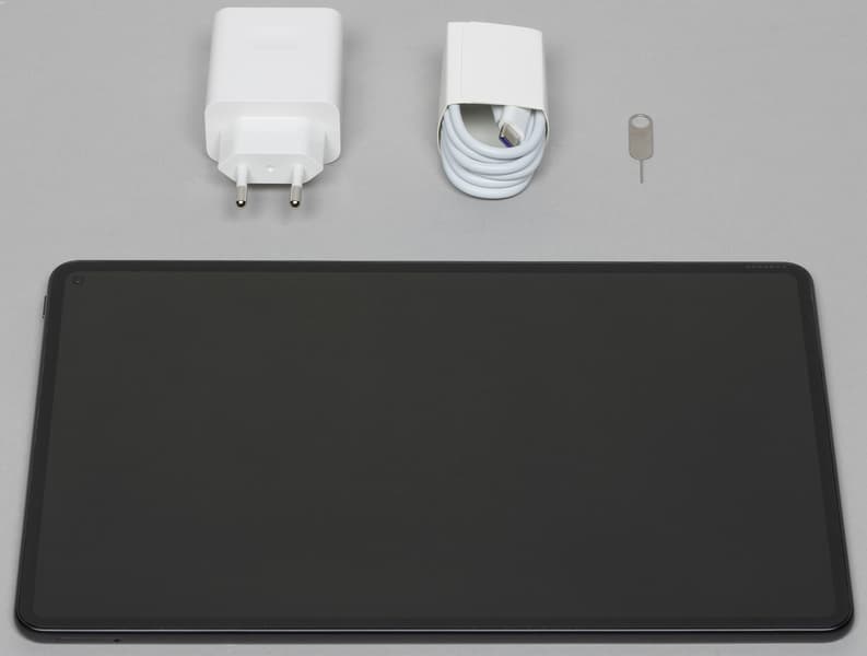 Комплектация модели со Snapdragon 888 включает зарядный блок 5 В 2 А с поддержкой быстрой зарядки (9 В 2 А или 10 В 4 А), кабель USB-A — USB-C и ключик для извлечения лотка для SIM-карты. Буклеты и руководства пользователя отсутствуют.