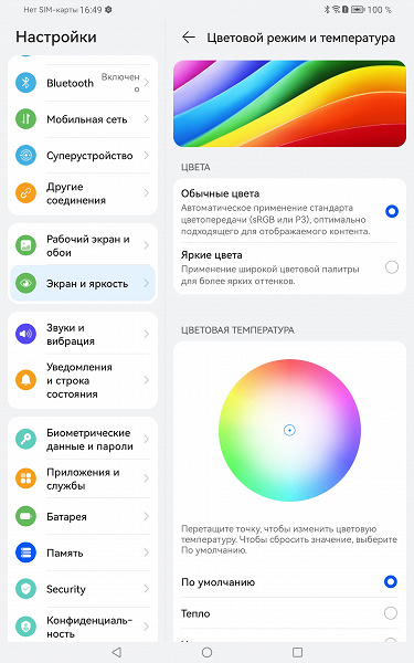 Фотография выше получена при активном профиле Обычные цвета (он выбран по умолчанию) в настройках экрана, всего их два: