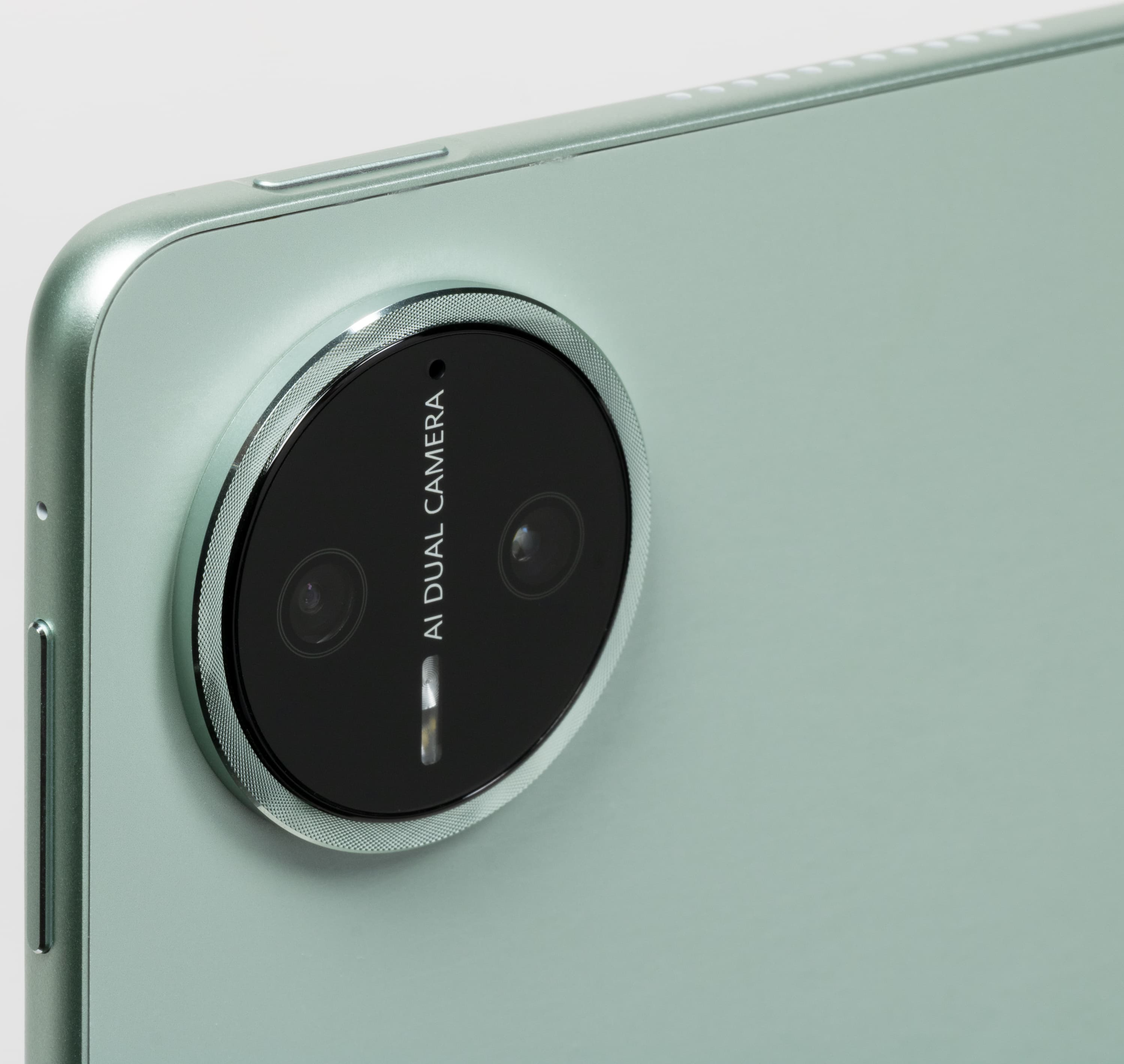 Очень тонкий (всего чуть более 5 мм) корпус имеет скругленные в плане пластиковые боковины выпуклой формы, однако поскольку они выкрашены под металл, ощущения дешевизны нет. Ну а крышка тыльной стороны выполнена из металла и отличается очень необычным неоднородным цветом. Это мягкий светло-мятный оттенок, вызывающий ассоциации с восточным орнаментальным искусством. Но самое интересное, что когда рассматриваешь планшет вблизи, то замечаешь на тыльной поверхности еще и изящные органические узоры.