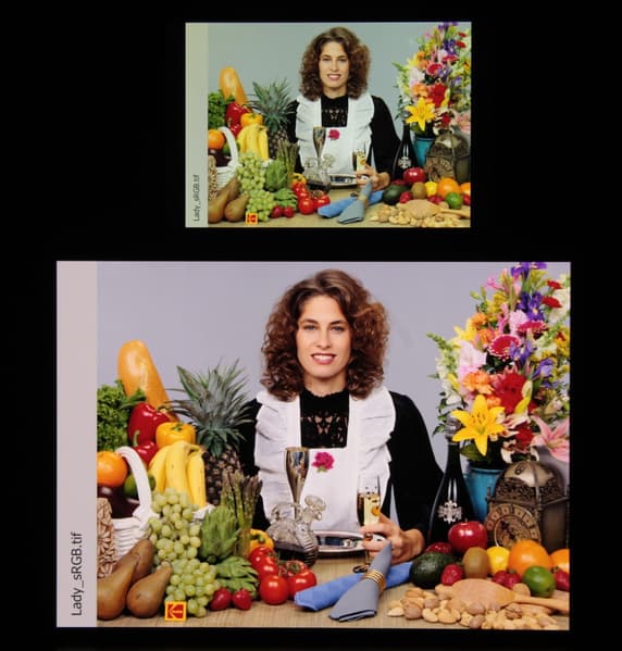 Отметим, что на экранах с уширенным цветовым охватом (без соответствующей коррекции) цвета́ обычных изображений, оптимизированных для устройств sRGB, выглядят неестественно насыщенными. Отсюда и рекомендация: в большинстве случаев смотреть кино, фотографии и все естественное лучше при выборе профиля Обычные цвета. При этом, если в изображении прописан отличный от sRGB профиль, то смотреть его лучше с использованием штатной программы Галерея.